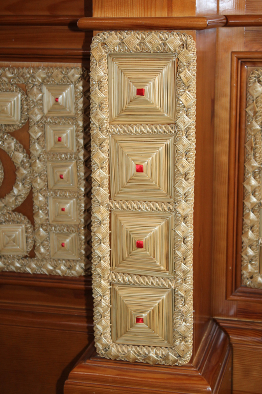 И как в настоящей деревне, в Дудутках имеется храм. Он интересен тем, что внутреннее убранство в нем из .. соломы! Красные "рубины" - атласная лента.