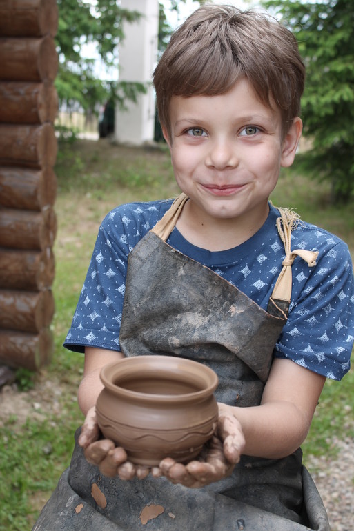 Арсений под руководством гончара пожелал сваять горшочек, и даже чудесным образом получилось) Стоимость удовольствия 15 бел рублей.