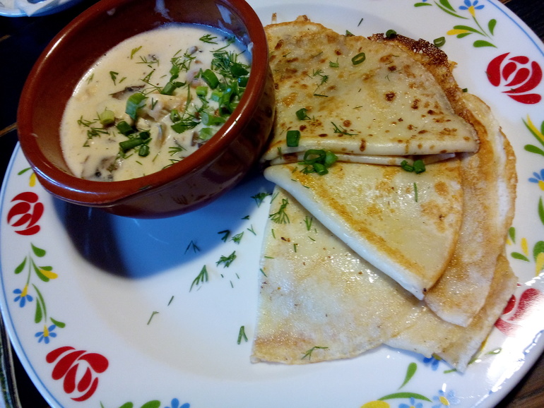 Это кстати наша третья попытка попасть сюда. Первый раз мы пошли ужинать в кафе, расположенное рядом с домом, в самом центре, но мест не было, сколько ждать непонятно, и мы поели в другом месте. На следующий день я позвонила днем, желая забронировать на вечер, и опять мимо, бронь уже не принимали. И вот третий раз увенчался успехом! Сейчас попробуем... узнаем почему эти Васильки так популярны.