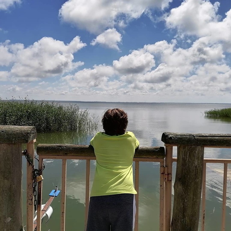 Самостоятельно на великах доехали до визит - центра Куршской косы, там же Музей природы, музей русских суеверий, погуляли, вышли на Куршской залив. Удивительное место - когда на одной стороне косы бушует Балтика, на другой, буквально в 500 м, вот такая благодать.