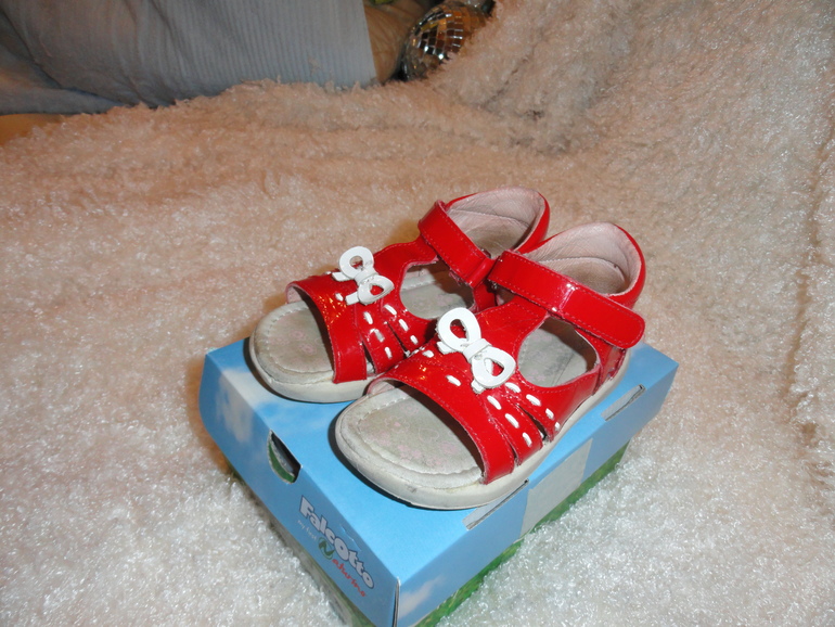 Босоножки Falcotto Naturino,Италия, красные, кожа, размер 25, стелька 16 см., носили очень мало под конец сезона, цена 1200 рублей.
