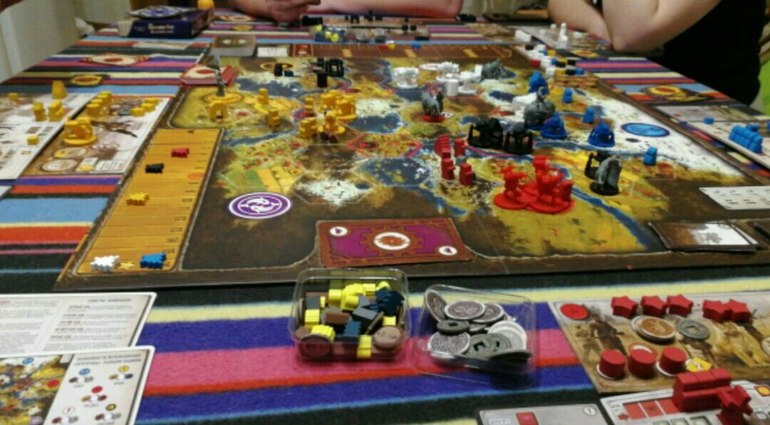 Поиграли в Серп. Всего за 3 часа партию. Я наконец-то выиграла в этой страшной игре) Хотя если бы не совсем Кости в последнем раунде, я бы была далеко не первая по очкам 😅