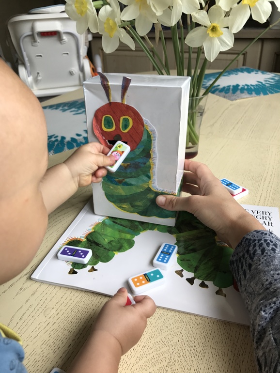 Левушка гусеницу покормил немножко, а потом сам принялся за поедание этих доминошек))) вообщем игра нам на вырост!