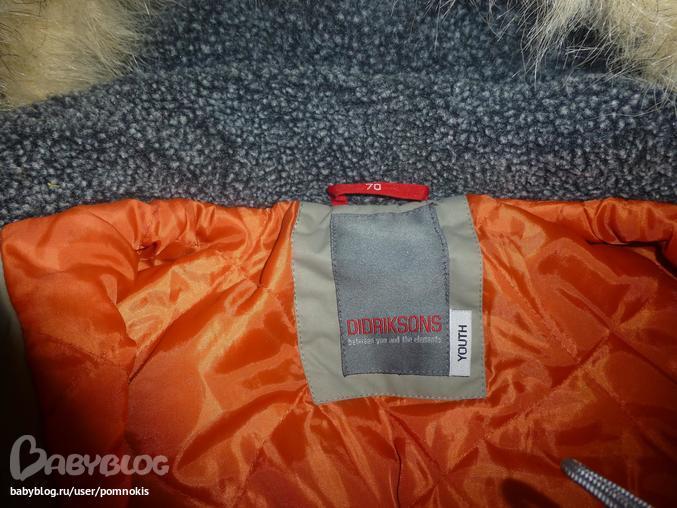 Изделия марки Didriksons не требуют частой стирки, так как загрязнения легко удаляются под струей воды. При необходимости можно стирать в стиральной машине при 40 градусах моющим средством, не содержащим отбеливающие вещества. Одежда быстро сохнет при комнатной температуре. Размер 70 см (+8-9 см). Цена 900 руб. г.Зеленоград, почта.
