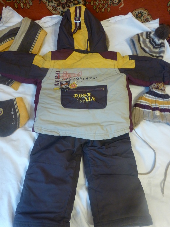 В комплекте шарфик и манишка флисовые. Вместе с костюмом отдаю фирменную шапку (покупалась отдельно) и в подарок шапка (флис). В наличии имеется фурнитура. В нем не мерзнет ребенок при -25 и не жарко при +5 . Отлично стирается, очень теплый, легкий. После одного ребенка. Цена 3800 руб. С почтой дружу ( за Ваш счет), г.Зеленоград.