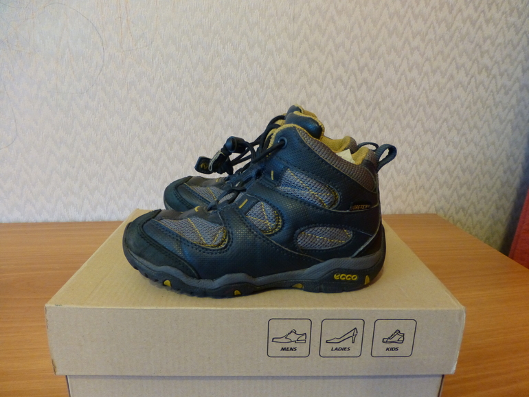 Продам высокие кроссовки экко 26 р-р, По стельке у них до углубления пятки 16,5 см, а вся стелька 17 см, сфоткала, чтобы понятнее было, мембрана gore-tex, в хорошем состоянии (относили весну и осень), теплые, носить сразу за зимними сапогами. Цена 700 рублей.