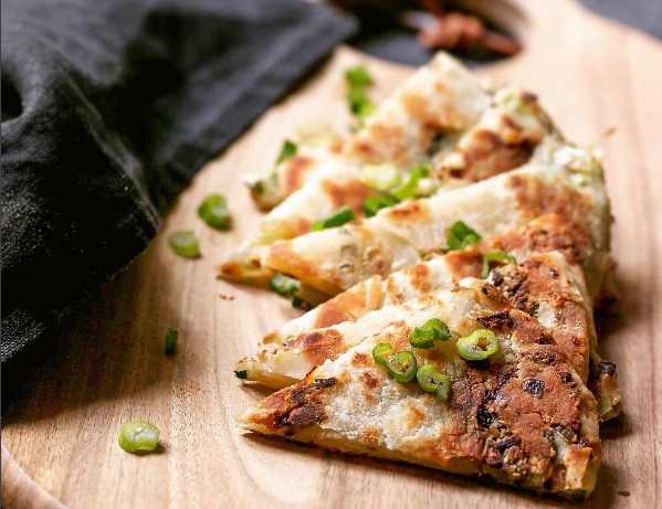 Китайские луковые блинчики очень просто приготовить дома. Всё что нужно - это мука, вода, растительное масло и лук. Замешанное соленое тесто разделяют на несколько частей, раскатывают в блин, насыпают лук, перемешанный с маслом и сворачивают в трубочку. Трубочку в свою очередь нужно свернуть в улитку и снова раскатать. Можно посыпать кунжутом, после чего обжарить с двух сторон. Подают с соевым соусом.