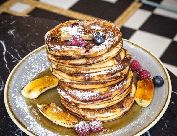 Американские оладьи весьма популярное блюдо во всем мире. Чтобы приготовить их дома, большого ума не надо, достаточно взять муку, сахар, разрыхлитель и соль, взбить всё это в миске. Добавить молоко, масло и яйца и обжаривать на сковороде небольшими порциями. Подают панкейки с медом или кленовым сиропом.