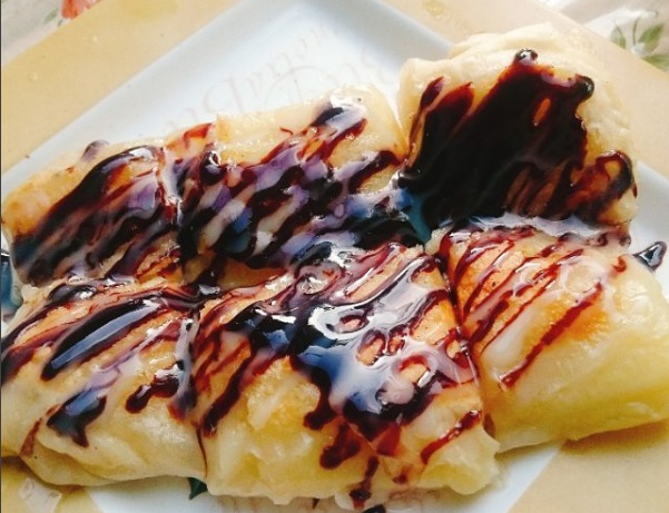 Тоненькие блинчики из рисовой муки с начинкой из измельченного банана - это рай для сладкоежек. В большую миску просейте муку, добавьте соль, сахарный песок, мед, теплое молоко, теплый зеленый чай и оливковое масло. Тесто разделите на маленькие шарики и каждый обмажьте оливковым маслом. Далее шарик нужно раскатать до полупрозрачного состояния и отправить на разогретую сковороду. В центр положить порезанный банан, завернуть конвертиком и обжарить с обратной стороны. Роти подаются с шоколадом, сгущенным молоком или клубничным сиропом. Несомненно, нужно обладать определенной сноровкой чтобы раскатать тесто в тончайший пласт, поучиться этому можно сами знаете где))