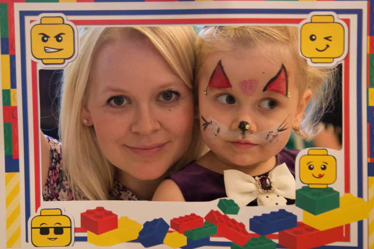 И еще из Лего-атрибутов была у нас такая Лего-Фоторамка, гости в конце праздника фотографировались и оставляли на память себе и нам счастливые мордашки)