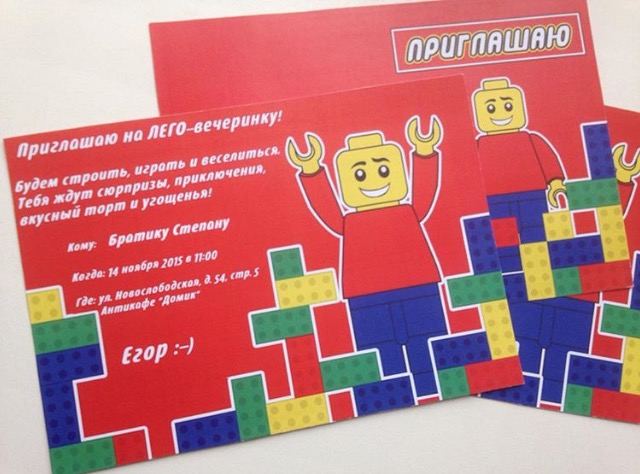 А теперь в душ, наряжаться и отправляемся в кафе встречать гостей и праздновать-праздновать-праздновать! Все гости заранее получили от Егора вот такие приглашения)