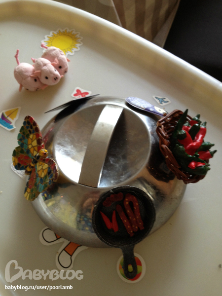 - Мое личное изобретение - крышка кастрюли с магнитами - можно их отрывать, менять, ронять, а под конец и грохнуть крышку на пол.