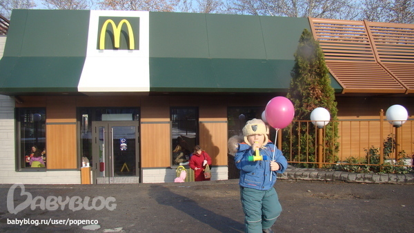 зашли в МакДональдс и с кучей подарков и прекрасным настроением поехали домой.