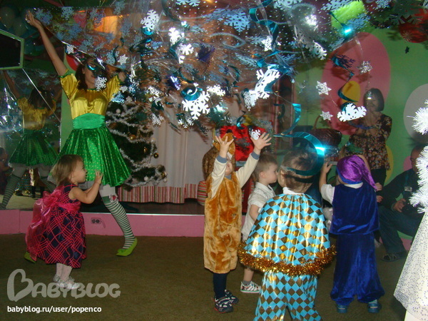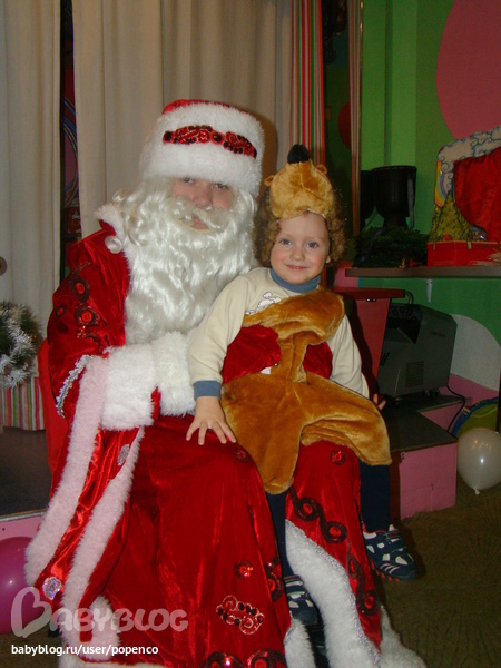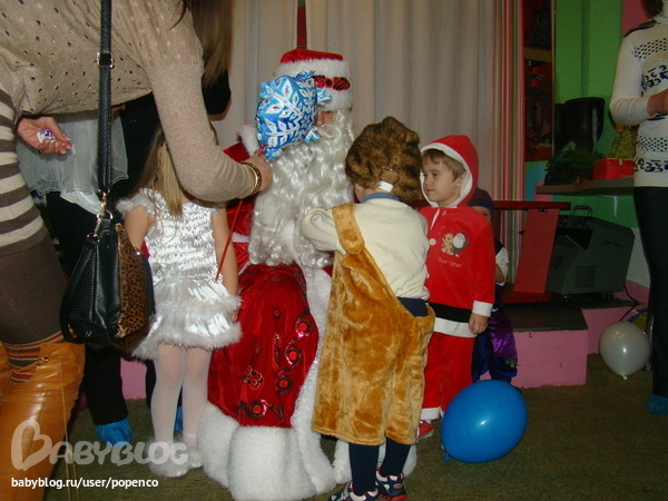 Вот и мой Вовочка побывал на своем первом Новогоднем празднике! Я даже рада, что он прошел не в садике (отказалась, так как стоит нам туда попасть, так обязательно ОРВИ), а в "Мастерской праздника" - детская студия. Все было просто замечательно! Программа расчитана для детей от 2 до 3 лет. Группы небольшие, чтобы каждому уделить внимание, у нас было всего 8 малышей. Вовчик был самым активным персонажем в костюме Ежика)))Это городская Елка, Вовочка на ее фоне просто крошечка.