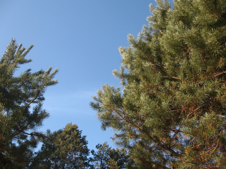 И когда мне кажется, что должно хорошо думаться в лесу, то оказывается, что мысли просто испаряются. Я только смотрю по сторонам и напитываюсь его молчаливостью, сбрасывая с себя как тяжелую ношу все ненужное, второстепенное и тягостное. В его январской мрачности я учусь находить то, на чем можно задержать взгляд. Мох, лишайник, прошлогоднюю травинку, что свисает как новогодняя гирлянда. Учусь, заново вспоминаю детство, когда каждая ямка - чья-нибудь норка. Открываю для себя новое - всегда представляла сосны, высокими, тонкими деревьями, а здесь такие причудливые покрученные формы встречаются.