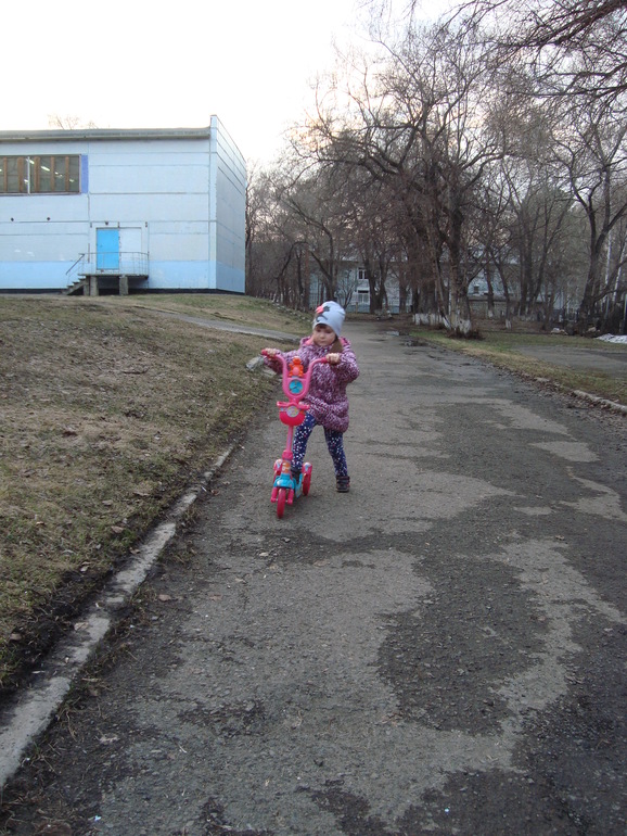 Пока Тася ест я решаю, что надо бы освежиться и предлагаю погулять-покататься на самокате. Время 8 вечера, мы собираемся на прогулку.