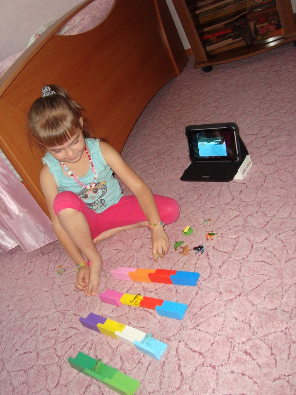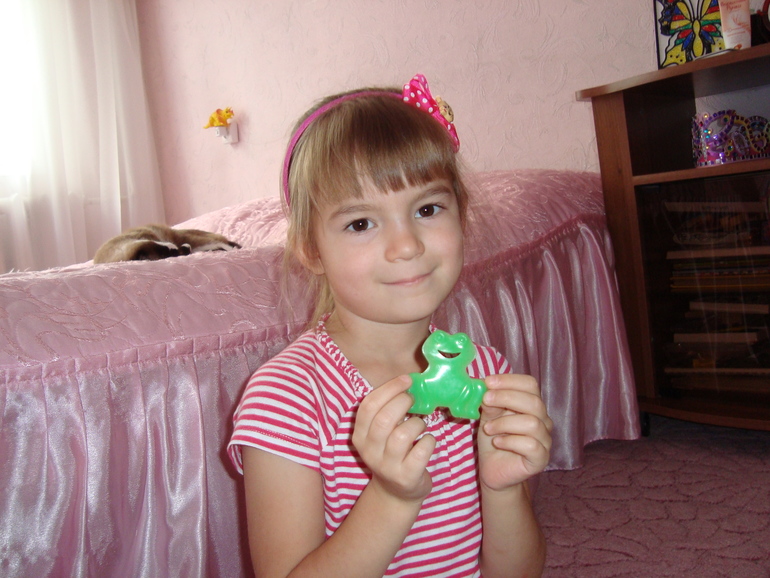 Делаем сами игру-ходилку. Кто больше насобирает "конфет", тот и победил. Тасина красная лягушка одержала победу.