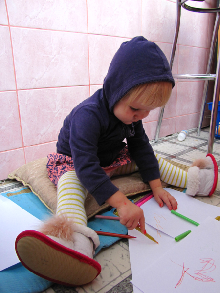 дождь шел на улице, мы дома сидели, точнее на балкончике) рисовали фломастерами!