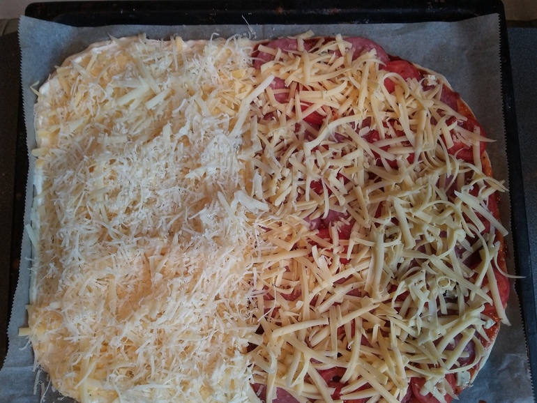 Для левой части использовать еще острый сыр и пармезан: