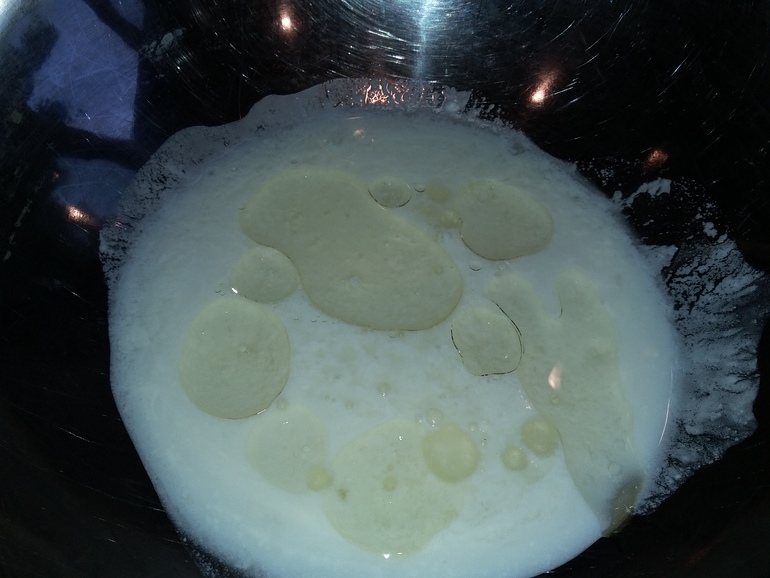 Смешать 1 стакан теплого молока, 1 ч.л. соли, 2 ст.л. раст. масла: