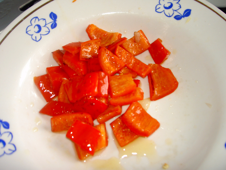 Затем друг за другом обжарить морковь, лук с чесноком, болгарский перец.