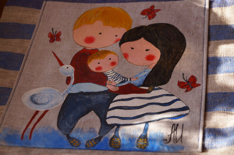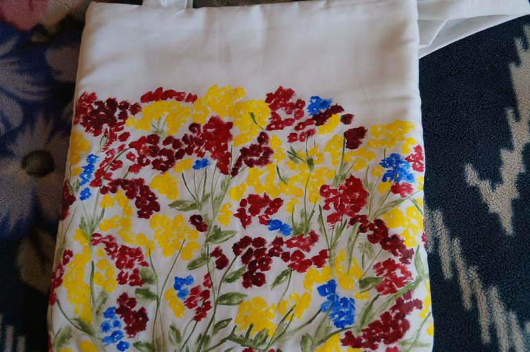 И тут, не долго думая, сообразила вот такую сумочку)))) А потом подумала-подумала, купила акрил по ткани и пустилась во все тяжкие))))