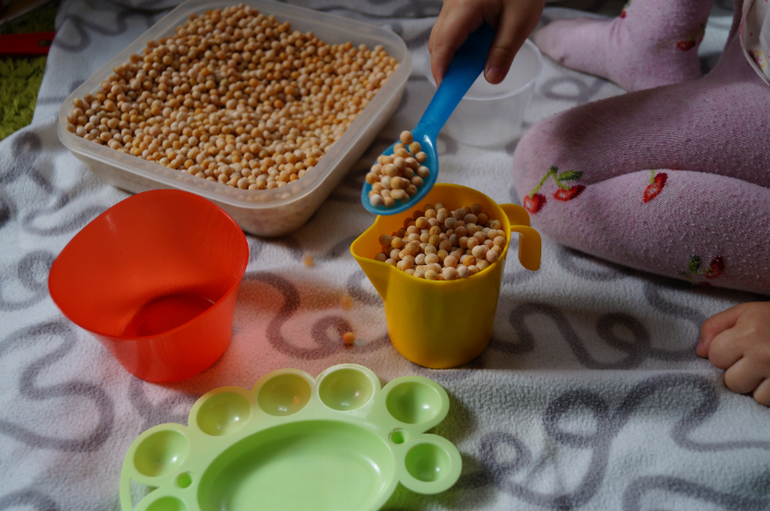 В целом, Встаём все поздно - около 10-10.30 утра. Кто-то из детей кого-то будит, обнимашками и целовашками. Потом совместный высад на горшки, чистка зубов, одевание, застилка кроватей и завтрак. Когда всё удовлетворены и счастливы - начинается произвольная программа.Так как разные настроения бывают, самочувствия, погода и прочее. По этому, достаём игрушки/конструкторы/кубики/книжки и играем, пока есть настроение, а мама слегка отдыхает/готовит обед/спит/убирается... Ставим стирки вместе, у каждого свои обязанности - Рома закладывает бельё, Поля открывает сектор для порошка и ставит программу. Вывешиваем тоже вместе бельё. Утюжу я редко и только под настроение...)) Уборку любят всё (кроме меня), так что если пылесос работает - то можно детей не искать - они помогают пылесосить. Полы мыть - Поля помогает, а Рома шлёпает пяточками по полу мокрому))) Пыль тоже вместе вытираем, и то, чаще так, для виду))). Потом могу дать им (вместе) поиграть крупы (горох, фасоль и прочая ерунда). Поля вообще и час может проиграть (начиная с перекладывания ложкой в другие ёмкости, а заканчивая салютами и катаниями круп с горок самодельных. Какая дальше укатится крупинка))) Короче, выручает нас это дело. Рома не такой стойкий, с ним я занимаюсь (в отличии от самостоятельной Поли). Тоже перекладываем ложкой (что почти не удаётся), а потом раскидываем по полу и собираем в разные тарелочки. (а потом снова раскидываем/собираем/раскидываем/собираем.........). Игрушки, погребенные в глубины находит в два счёта и это вообще скучно, в отличии от разбрасыванияяяяяя....))) Короче, после круп у нас обязательная пылесоска)))
