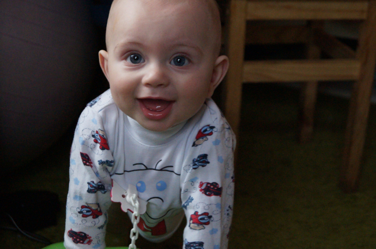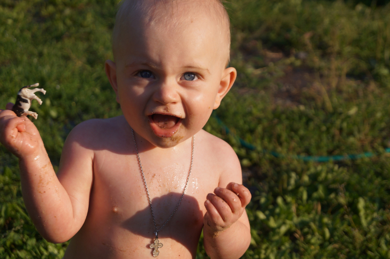 Ромке год был месяц назад. Сын ходит, бегает, падает, ест, пьет, плачет, важничает и балуется. Уже начинает говорить словами-обозначениями. Знает много предметов/животных/книг. Имеем 10 кг живого веса и 77 см роста, плюс 4 нижних зуба и 2 верхних (боковых резца, а не центральных), итого - сынок-вампирёныш.)))) Одно время сын ваще сопли развозил по разным поводам и при их отсутствии тоже. Потом, как щёлкнуло что-то, стал опять нормальным человеком. Ест нормально, всё подряд. Особенно любимое у нас - хлеб... По-малу осваиваем горшочные дела. В памперсах только спим ночью или если далеко идем гулять. Одно но, Очень плохо стал спать по ночам... я чую, что скоро впаду в спячку до весны!!! Это пипец, товарищи... по 7-9 раз встаю покачать за ночь! Грудь мы едим только ночью, но думаю, раз всё равно встаю ночью, то и грудь попробую убрать. Да и молока там уже постольку-поскольку. эээ... да вот в целом и всё. А так, с Полей на пару такие дела вершат, что скоро они поработят мир этим дуэтом!