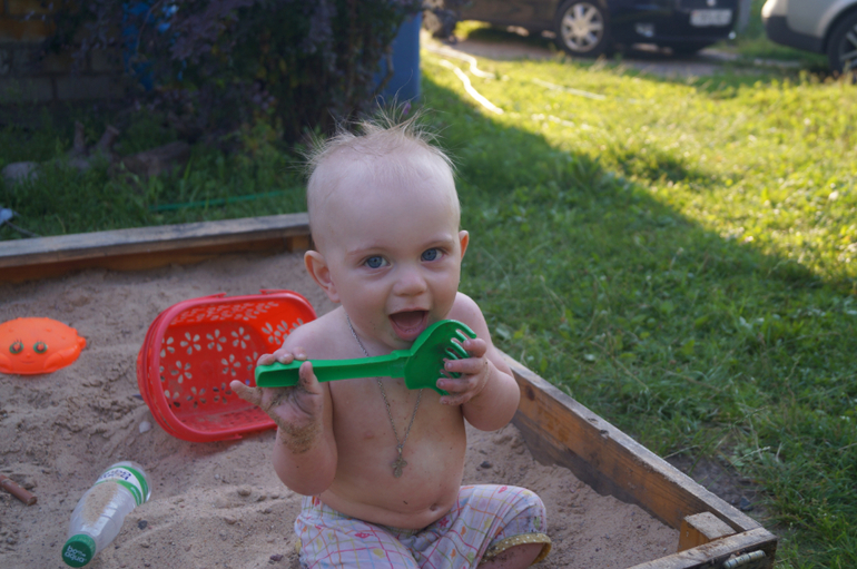 Полон рот песка - привычное дело... Я только успевая выгребать изо рта всё подряд....