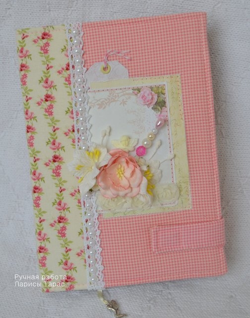 Всем доброго дня! Я к вам сегодня пришла с очаровательным блокнотом, который делала на заказ. Хотела сделать его нежным, воздушным и цветочным, по-моему, мне удалось воплотить идею. Во всяком случае, я осталась довольна результатом :) Формат А5, мягкая хлопковая обложка и тонированные в кофе листы - запах просто потрясающий!!! Есть закладочка с феей, закрывается блокнотик на застежку-липучку. Весь декор на обложке прошила для надежности.