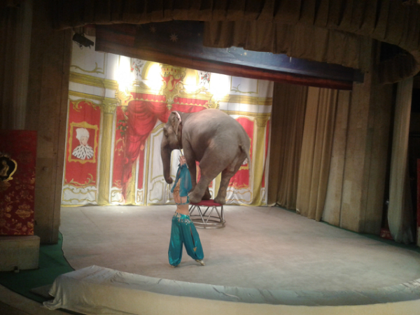 ), много номеров со зверями, которые вписаны в контекст спектакля, Дедушка Мороз со Снегурочкой были, "Елочка гори!" кричали, желающие могли к билету купить Подарок.В антракте фотографировали с мелкими и безопасными зверьками и можно было погулять по живому уголку.