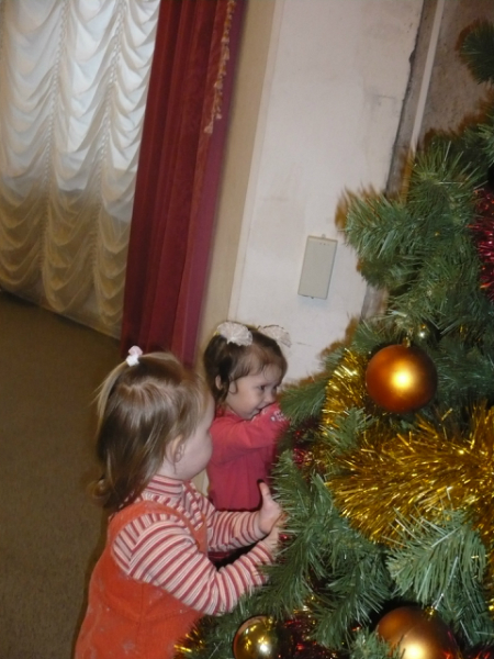 В компанию мы позвали 2-х мальчиков 3-х лет с мамами, которые один за другим заболели, и, в итоге мы съездили на елку с соседкой и ее дочкой 1 год 11 месяцев.