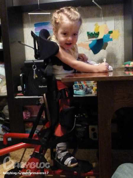 После нескольких мытарств по Турнера от одного врача к другому заведующая 4м отделением (где кстати Кенис работает) сказала ложиться в феврале. Я уже подала документы на квоту ВМП, жду результат и вызов из института на конкретную дату. Что будут делать, пока не знаю...врачи сами не знают, но скорее всего костной реконструкции бедер пока не будет. Возможные варианты спасения суставов пока будут нести палиативные меры, но есть шанс, что со временем при правильной реабилитации мера будет лечебной. На данный момент 2 варианта: Диспорт или мини-инвазивная мышечно-сухожильня пластика с 3-недельным гипсом. После обоих видов срочный возврат в Москву и интенсивная разработка и реабилитация. Где и как пока не знаю...в реаб.центры с сильным активным ЛФК и массажем нам уже не попасть, записи нет, хотя в реерв на очередь я встану. Поэтому остается только надому...дорого...не знаю, как всё получится. Пока до февраля у нас такой план. Кроме логопеда и дефектолога, у нас интенсивная вертикализация. Благодаря жалобе президенту мы как москвичи получили вертикализатор Бантам и ходунки и теперь наши шансы спасти суставы увеличиваются. Стоять 3-4 часа в день, ходить в ходунках 1-2 часа минимум. Даже кормить рекомендовали в вертике. Странно, что спать в нем не надо стоя...Рекоменовали отказаться от прогулок, чтобы сэкономить время и использовать его на вертикализацию. Что делаем? стоим 3-3.5 часа в день и 1-1.15ч ходим в ходунках. Еще спим, немного гуляем если не холодно и кушаем. кушаем пока в стуле, но пьем уже в вертике...вот такая у нас жесть...еще иногда ползаем по 20-30мин...А в качестве развлекаловки, отдыха и тренировки вестибюлярного аппарата качаемся на качелях, т.е опять-таки совмещаем приятное обязательно с полезным, без полезного никуда...даже игрушки у ребенка исключительно "полезные"...