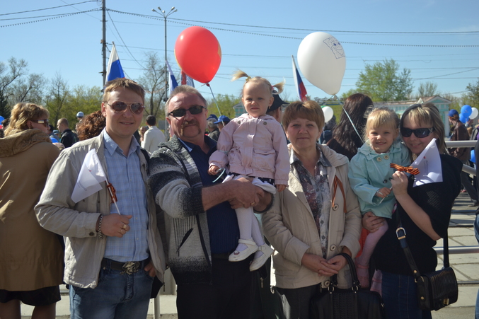 Празновать не будем д.р.,так как страстная неделя идет,просто напоим бабушек с дедушкой чайком с тортиком. Утром уже сходили на демонстрацию,ей так понравилось это скопление народа))) Ну и фото именниницы пока только одно,и общее,с папой,бабушкой,дедушкой,тетей и сестрой))))