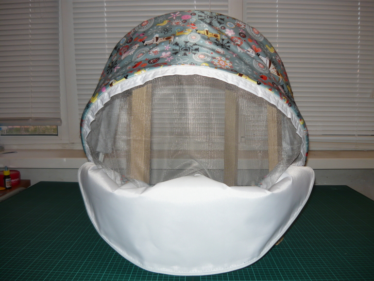 но мы пошли немного дальше и добавили еще сетку и клапан для проветривания в нижней трети капюшона, козырек сделали побольше и немного другой формы )))
