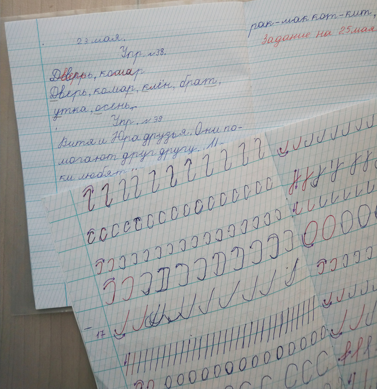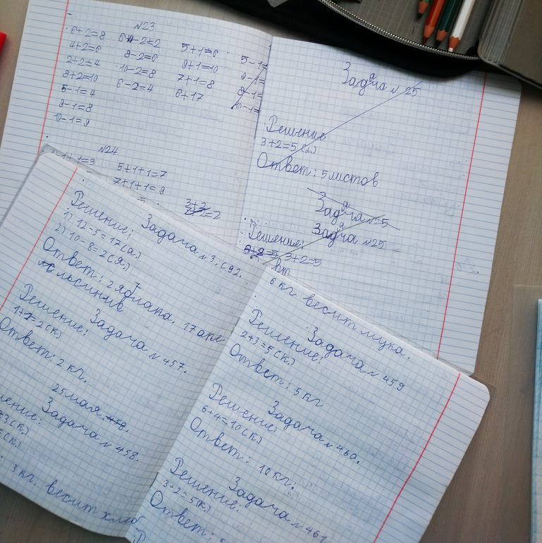 В течении первой половины учебного года он занимался по моим тетрадям, бывали разные моменты, в том числе и полного отсутствия времени у меня на занятия с ним + но болел очень часто.