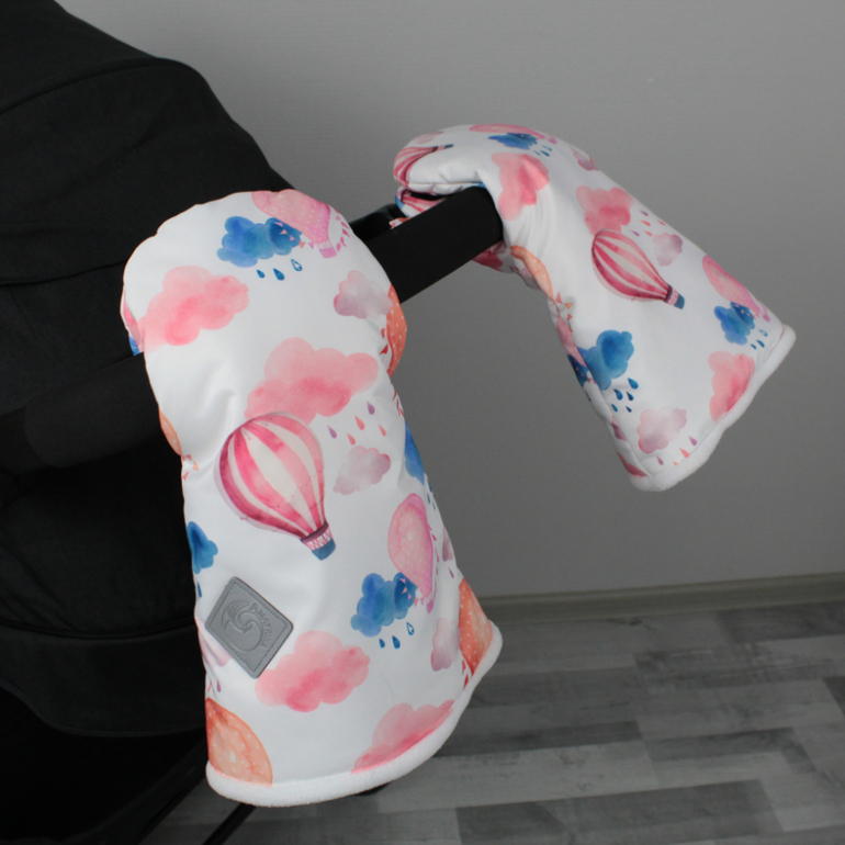 Варежки между собой соединяются страховочным ремешком в нижней части и ремешок имеет достаточную длину чтобы вы могли подобрать удобное именно Вам положение варежек на ручке коляски.
