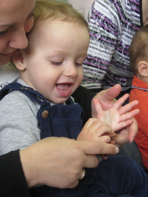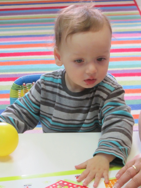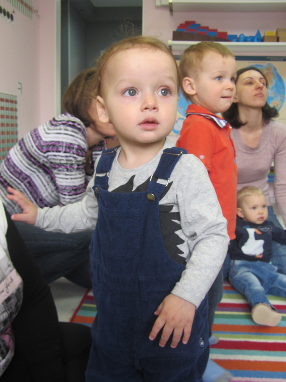 Начали опять ходить в бэби-клуб наконец-то! Выполняет все задания наравне с двухлетками, отличие только в том, что они дольше могут слушать преподавателя. Мой быстрее убегает, чем двухлетние.