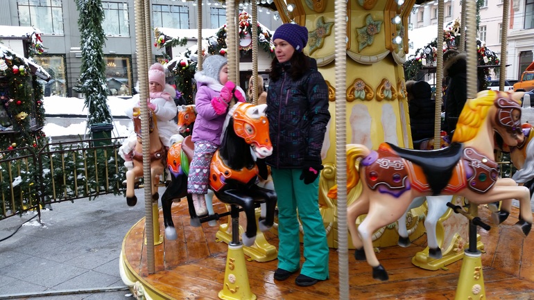 Все ярмарки построены по мотивам русских сказок, но если в том году было путешествие по разным странам и соответственно было много интересностей в продаже из этих стран, то в этом году из-за санкций решили сделать вот такие ярмарки, так что мало что можно найти интересного к покупке-почти везде игрушки "хэндмэйд" и Тульские пряники) в городе гномов есть кое-что из Риги и иже с ними, на Кузнецком мосту была ярмарка "Пиноккио", где было много что представлено из Италии, даже магнитики и прочую лабуду продавали, но я не понимаю таких покупок-то есть магнит из страны у меня будет ассоциироваться не со страной, где был куплен, а с ярмаркой в Москве) Но там установлена бесплатная карусель! Мы пару кружков сделали))