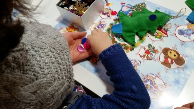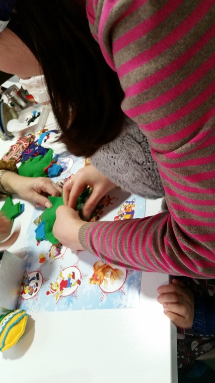 А в зазеркалье мы были на другом мастер-классе, шили елочку из фетра! Ну конечно в основном мастерила я, но Ксю подбирала аксессуары)) очень понравилась тетенька там-такая добрая и душевная!