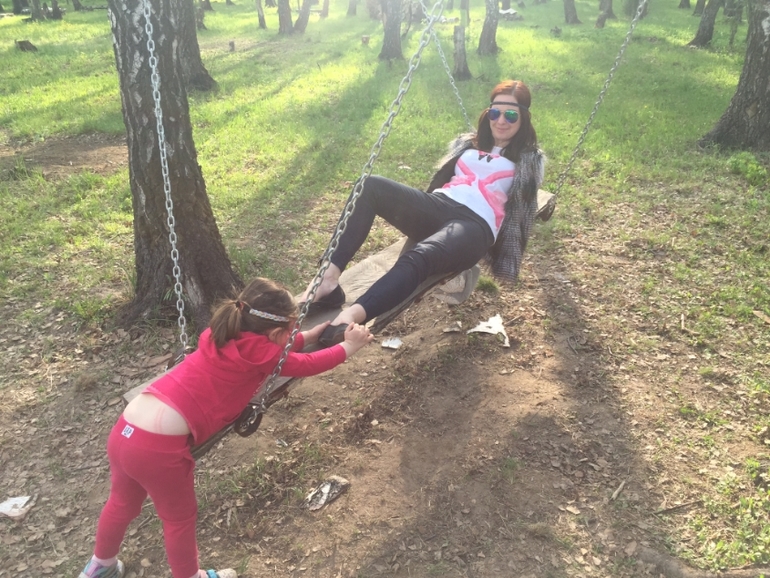 И через плетеный забор проходишь на лужайку с мангалами, дровами и крутецкими качелями! То есть можно прийти, принести свое мясо и сидеть спокойно на природе