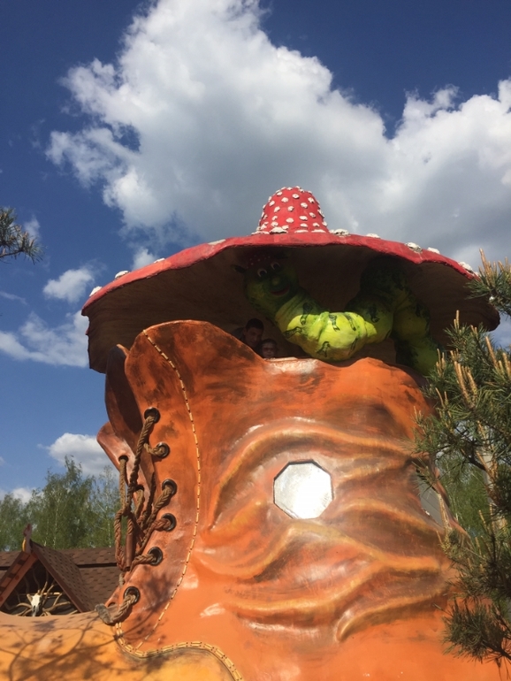 Совсем я пропала отсюда, но не из интересной жизни, так что освящу пару наших походов-но самый фантастический-это находится он в 15км. от МКАД-близ Домодедово, но когда мы приехали-поняли, что и 100км стоило бы проехать ради этого чуда! Встретила нас аллея со сказочными персонажами