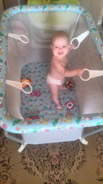 Поползла на четвереньках по-моему толи на следующий день, толи через два дня после того как сама села. А села она через несколько дней как встала. Чудно, подумала я. Пару тройку раз вызывали в этот период врачей, которые ругали почему такая малютка стоит и даже ходит. Но как уж её теперь уложить. Теперь всё. Она такая взрослая. Так быстро. Остановите время.