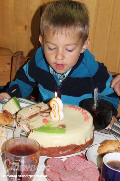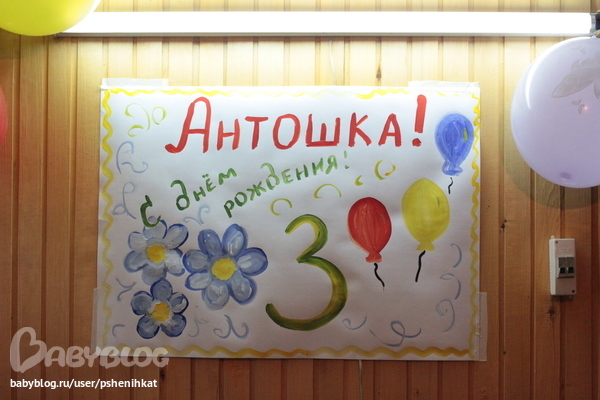 16 сентября, Антошеньке исполнилсь 3 года!!!! Праздник прошёл на ура!!!!! 15 числа я сделала тортик, приготовила всё необходимое для праздника, нарисовала плакат, карту...... Мы проснулись утром, и все дружно начали поздравлять, наше любимое солнышко с Днём Рождения!!!!! На завтрак у нас был тортик, свечка - цифра 3, которую сынуличка задувал раз 8!!!!