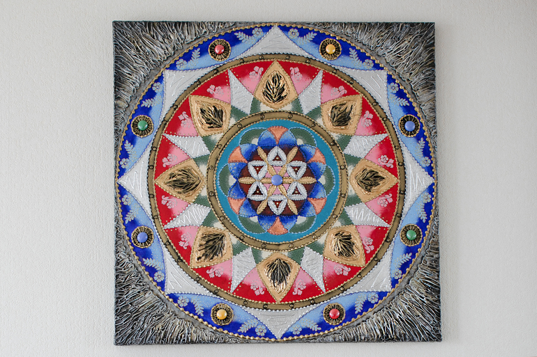 но я не только работаю с этой чудесной книгой, но уже создала две великолепные, единственные и неповторимые мандалы на холстах. Вот одна из них.