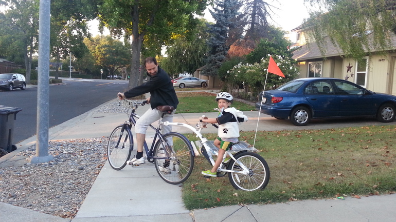 Я и Алон едем на великах в библиотеку.