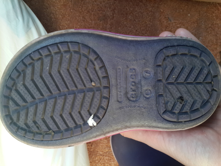 В идеальном состоянии, ну конечно подошва немного испачкана, дело думаю в стирке все решится) Размер "7" примерно 23-24 наверно