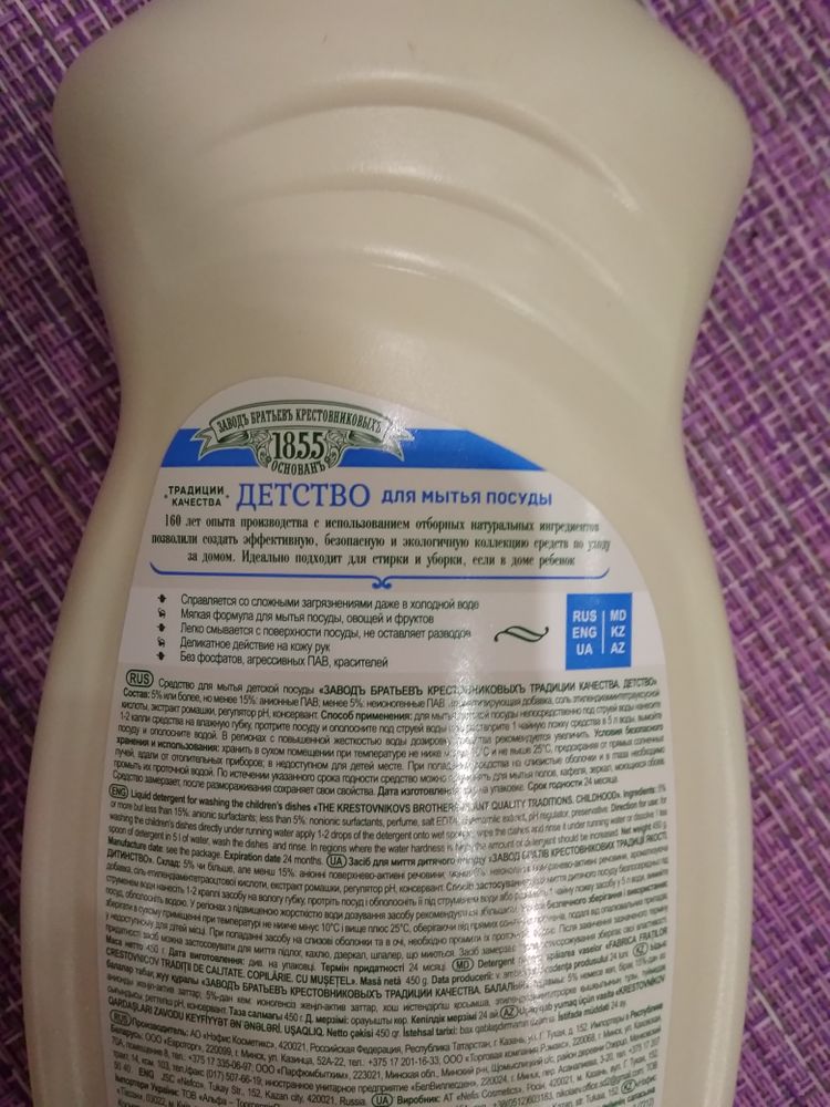 Довелось мне тут протестировать продукцию компании "ЗАВОДЪ БРАТЬЕВЪ КРЕСТОВНИКОВЫХЪ",а именно порошок для детских вещей, моющее средство для посуды(фруктов, овощей) и мыло.