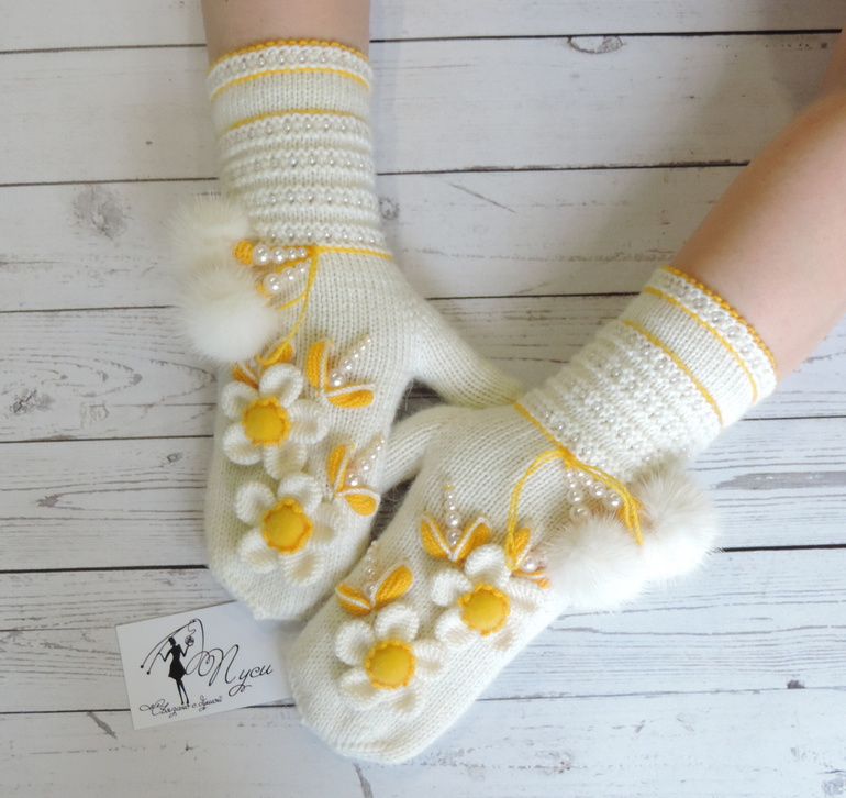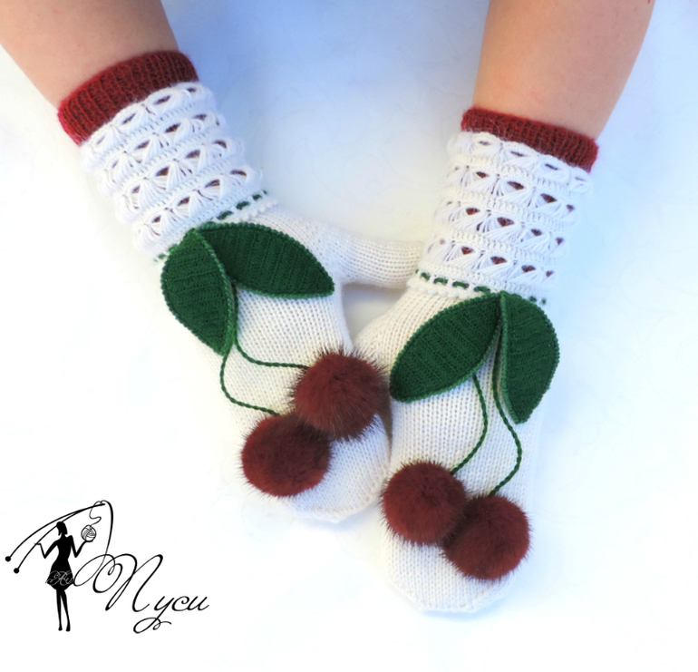 Варежки "Зимняя вишня" .. посмотреть больше фото и оформить покупку можно