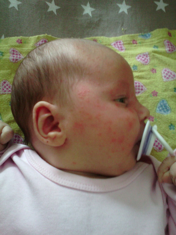 Дд! Подскажите, помогите, пжл) дочке месяц и одна неделька! Пару недель назад начала появлятся сыпь на лбу, мелкая. Теперь же на лбу эта сыпь стала еле заметная, но все спустилось на щеки и уже не такой мелкой сыпью а прищичками, красными с белой серединкой. Мы на гв, диету стараюсь соблюдать. Педиатр говорит или гормоны или аллергия. Но что же именно? Дальше фото